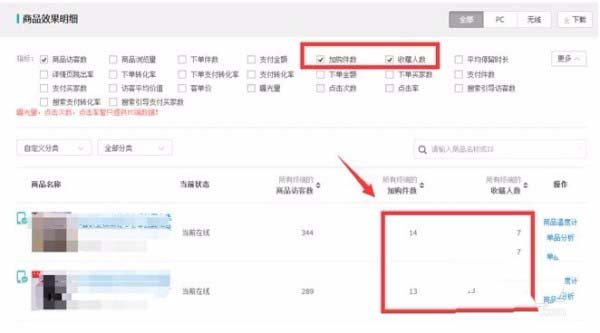 ③上面是收藏加購的人數,收藏率、加購率的算法是除以商品訪客數就可以了。