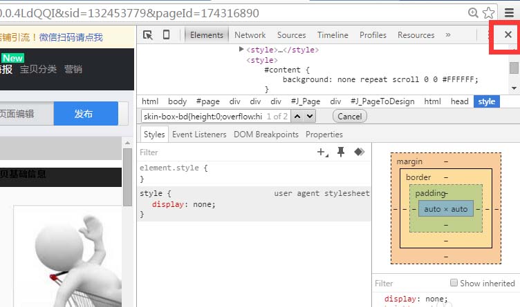 9、然后點右鍵--審查元素-CTRL+F -再將.skin-box-bd{height:0;overflow:hidden;}放入搜索框搜一次,再次選中搜索出來的結果