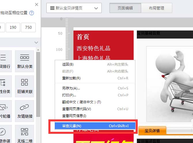 3、接下來我們來找回它,在裝修頁面,點擊右鍵,選審查元素:
