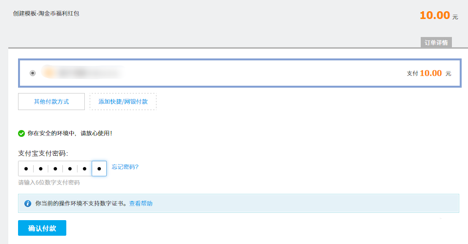 6、下面就是輸入支付寶密碼,然后成功支付。回到淘金幣賬戶后,就能夠看到充值到的1000個淘金幣了。