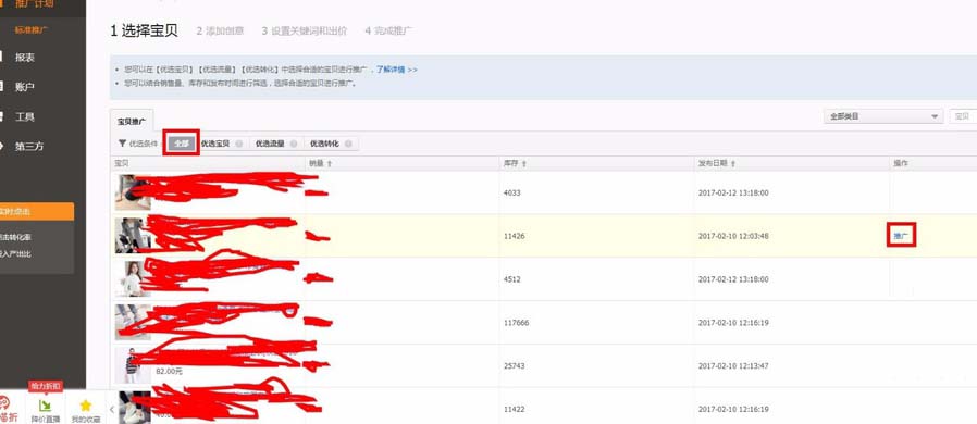 4、設置詳細信息→新建寶貝推廣→選擇要推廣的寶貝→鍵入標題→下一步