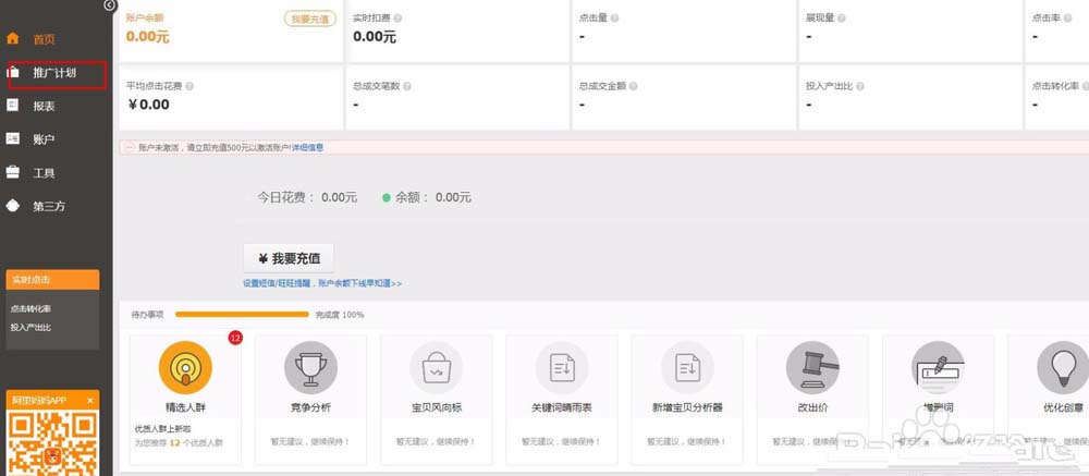 2、進入淘寶直通車→點擊推廣計劃→新建推廣計劃