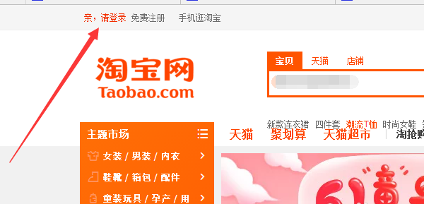 2、找的淘寶網(wǎng)首頁左上側(cè)登錄,登錄我們的淘寶ID賬號。