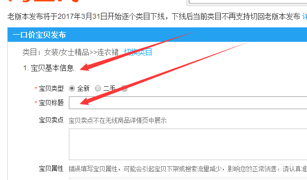 6、進(jìn)入發(fā)布寶貝后,需要填寫寶貝標(biāo)題,寶貝標(biāo)題為六十漢字,十五字符。