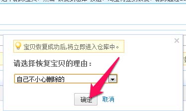 5、選擇恢復理由,完成恢復寶貝到倉庫。