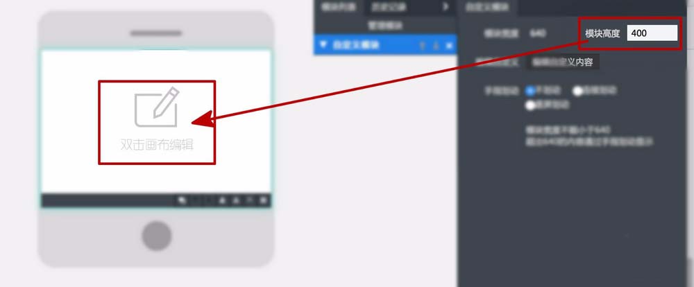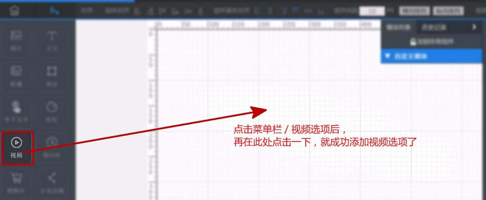 4、進入自由頁面編輯,調節畫布高度,(根據自己需求,大于視頻尺寸),雙擊畫布進行編輯;點擊一下左側菜單欄里的視頻選項,接著再點擊一下畫布,此時畫布里便插入里視頻選項。