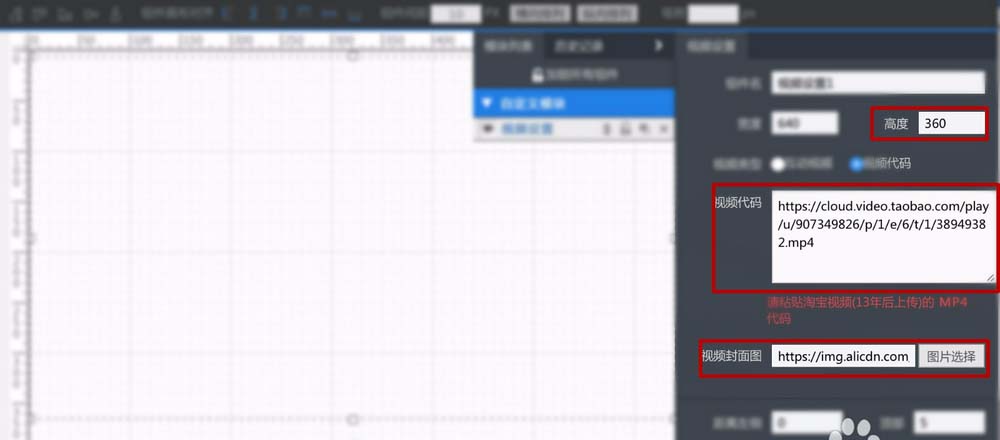 5、編輯視頻選項,即高度,視頻代碼,視頻封面圖;1,高度:根據自己視頻大小設置,一般為400,2視頻代碼的獲取,進入媒體中心/電腦端視頻,找到自己上傳的視頻,點擊復制按鈕,復制mp4代碼,注意勾掉自動播放,將代碼復制到視頻代碼處即可,3視頻封面圖,自己制作上傳一張即可。