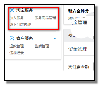 4、淘寶服務下級菜單中,我們看到有:加入服務,這就是我們所需要的入口