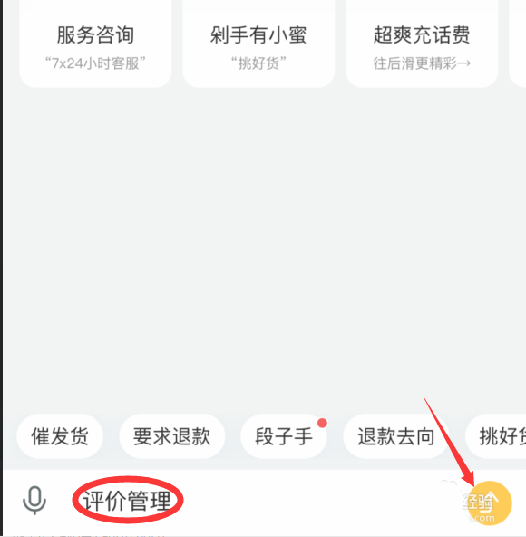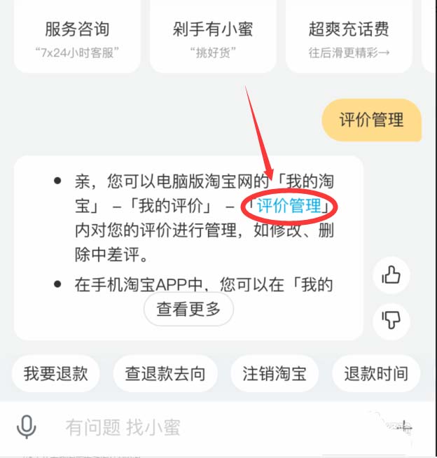 5、待小蜜回復以后,如圖點擊藍色字體“評價管理”進入網頁查看