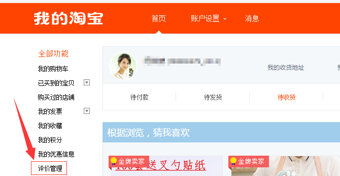 4、進入我的淘寶中以后點擊下方“評價管理”進行查看