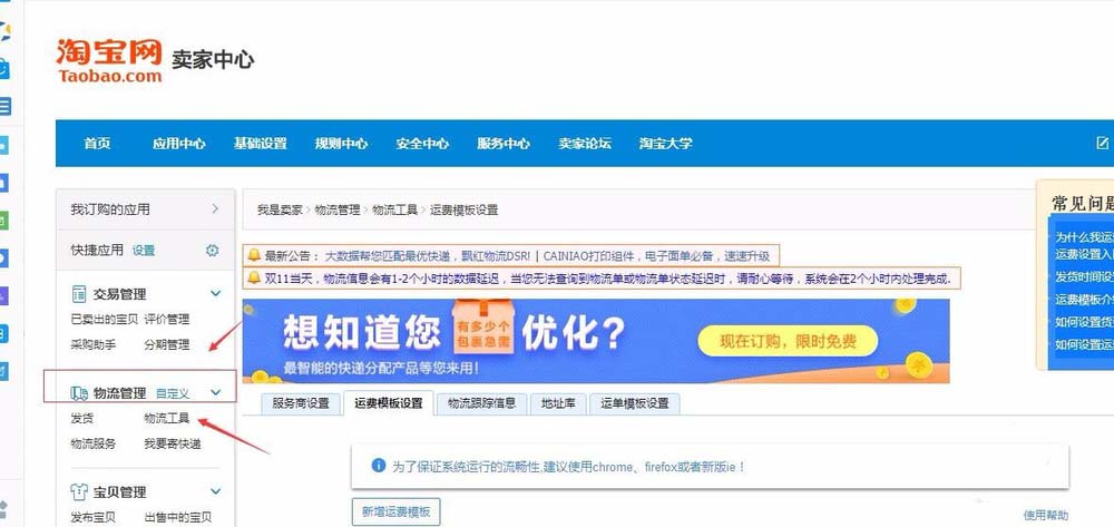 淘寶購買寶貝,肯定需要快遞,該怎么設置物流模板呢?下面我們就來看看詳細的教程。
