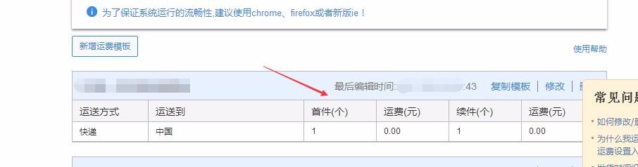 7、全部設置完之后,點擊保存并返回即可;運費模板設置 可查看到您之前設置的運費模板;