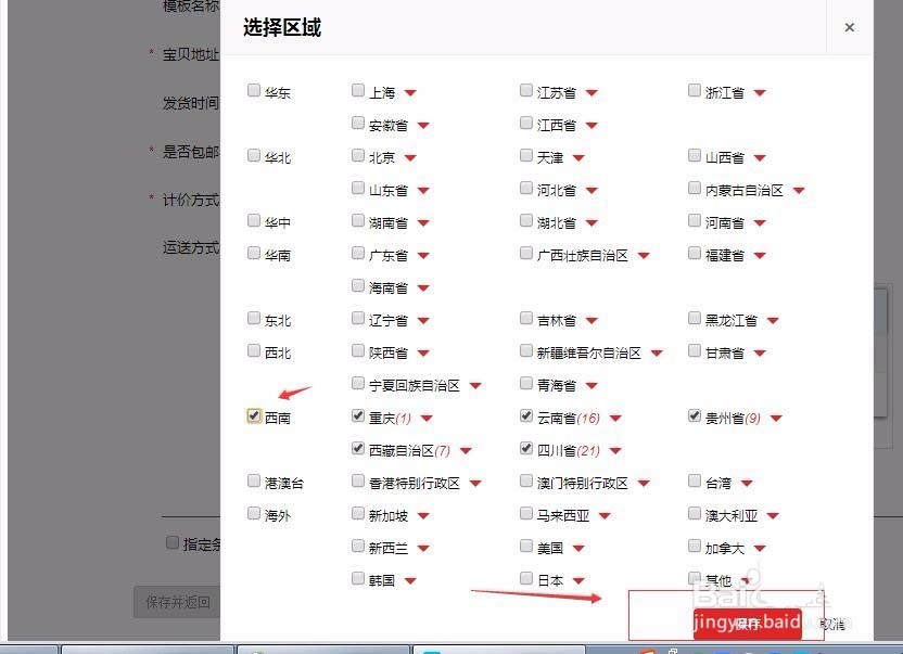 5、若設置不同的地區 運費不同,在運送到地區,點擊“編輯”,根據自己的情況設置不同的地區的運費是多少,也可根據件數調整,沒增加一件,運費增加多少錢