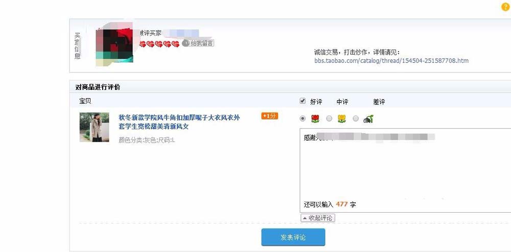 4、勾選評(píng)論等級(jí),輸入評(píng)論的評(píng)語(yǔ),點(diǎn)擊“發(fā)布評(píng)論”