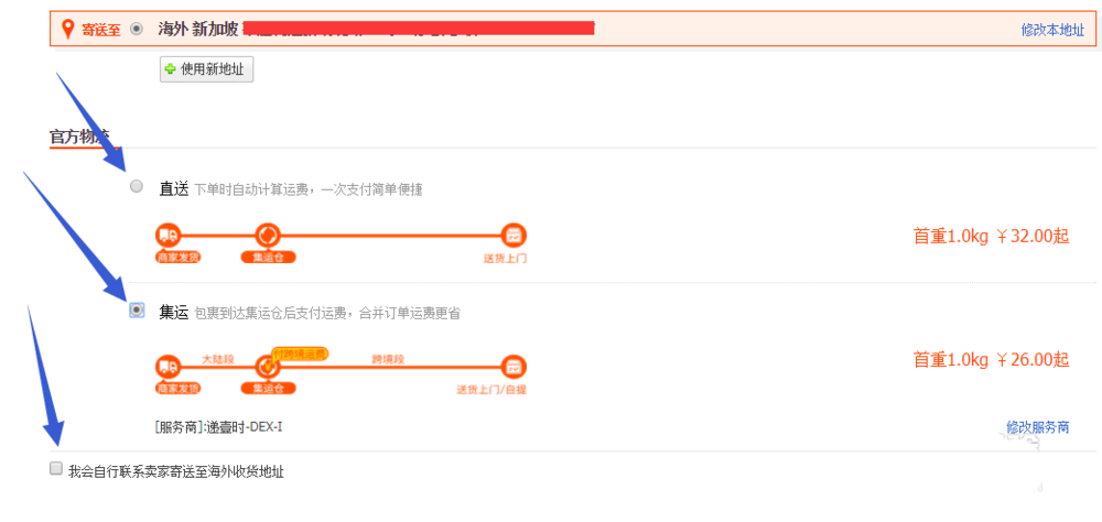2、買家選擇自己聯(lián)系賣家寄送、直達(dá)和集運(yùn)三種物流方式的區(qū)別: