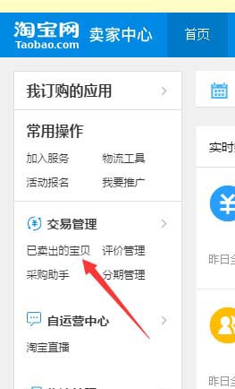 3、點擊登入后,進(jìn)入賣家中心主頁面,如下圖頁面左側(cè)交易管理下有一個已賣出寶貝入口,點擊進(jìn)入即可