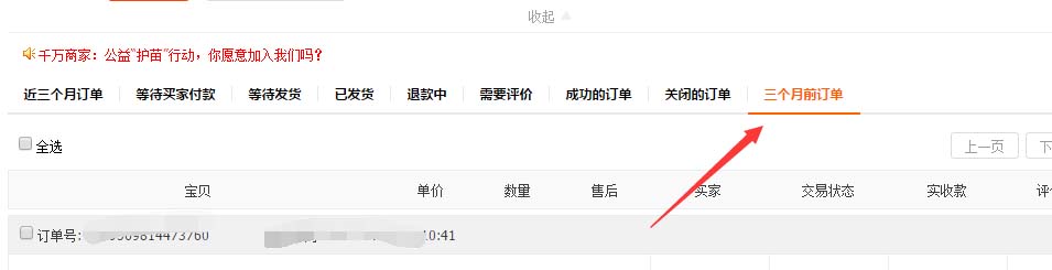 5、這邊需要查詢的是淘寶全部訂單,這個時候需要選擇3個月前的訂單,這個是你全部已經(jīng)賣出的寶貝訂單(交易拍下了都會顯示,不管交易成功還是失?。?/p>