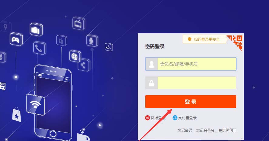 2、搜索進(jìn)入后,需要登入你相關(guān)的賣家賬號,可以使用手機(jī)淘寶掃描或者輸入賬號密碼輸入,當(dāng)然也可以選擇相關(guān)聯(lián)的支付寶登入