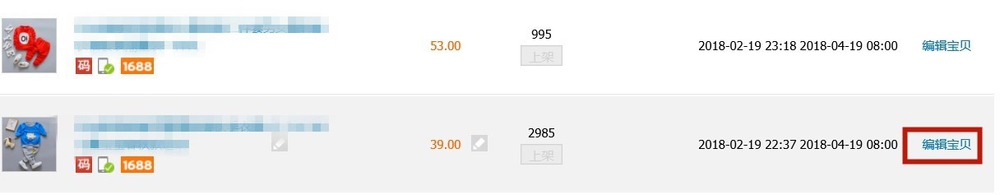 1、在【寶貝管理】里點(diǎn)“倉庫中的寶貝”,之后在商品信息后面點(diǎn)【編輯寶貝】,如圖所示。