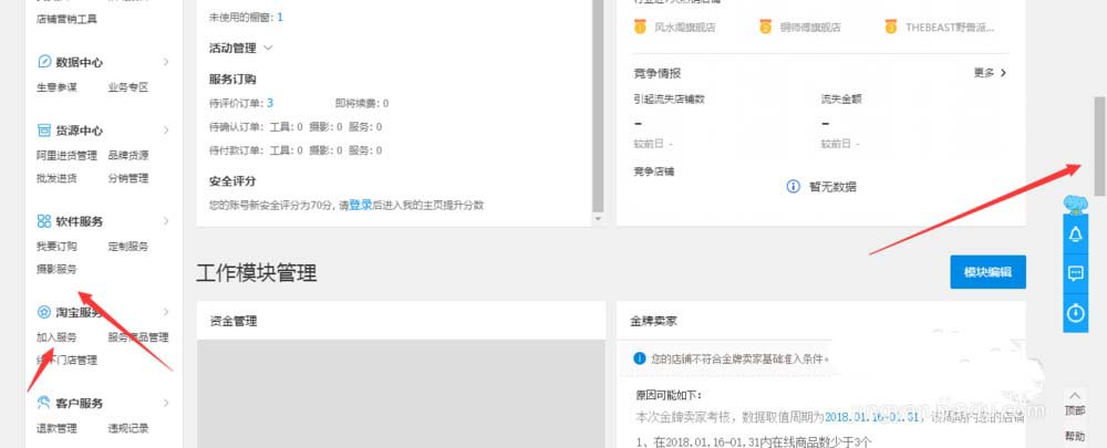 6、接下來系統會提示你,如果滿足條件直接點擊加入服務即可,如果不滿足就無法加入,完善好店鋪運營等待后期加入。到這里教程就完成了。