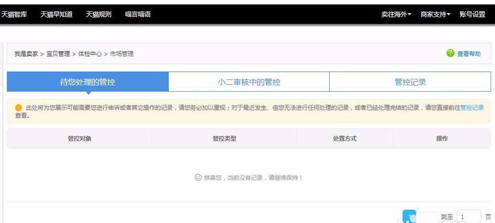 2、在市場管理中我們打開待處理管控和小二審核中的管制,如果店鋪產品有這兩處管控信息提示,需要及時跟進處理,否則容易被扣分處罰。