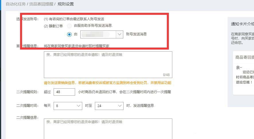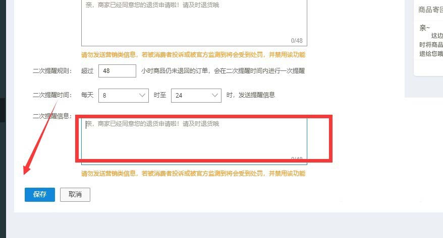 以上就是淘寶設置退貨提醒的教程,希望大家喜歡,請繼續關注武林網。