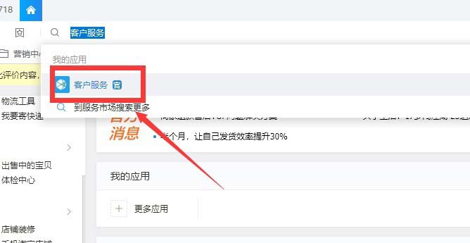 3、搜索結果展示后,找到名為客戶服務的入口,點擊進入。如下圖紅標位置所示。