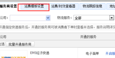 3、在右側頁面中,點擊上方的運費模板設置,進行切換