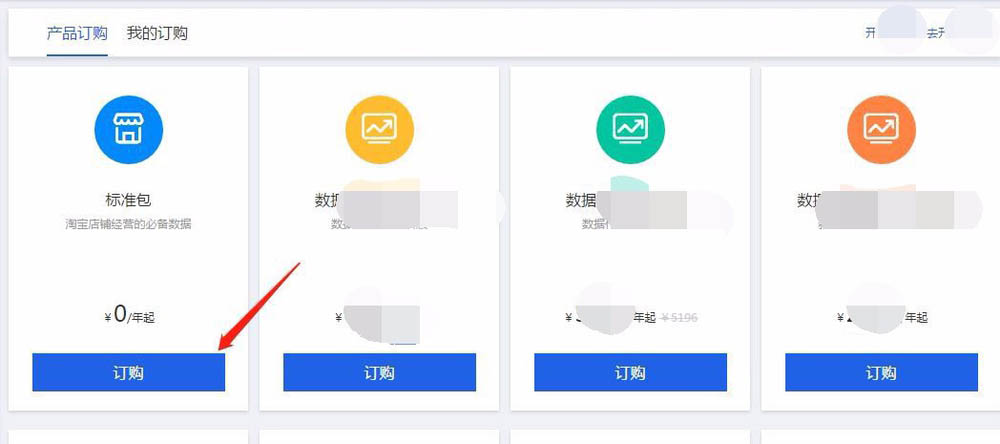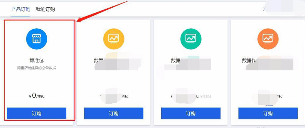 3、在訂購中心有很多版本的生意參謀可供選擇,對于新開店的賣家,建議選擇第一個免費的“標準包”,等到用熟練了在考慮其它版本。