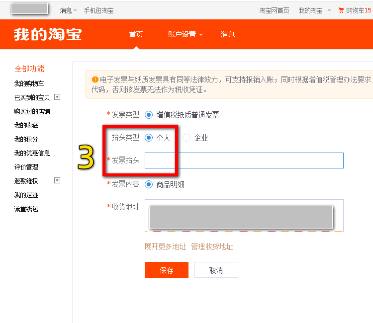 3、如果是個人類型,只需要發票抬頭填個人,或者姓名
