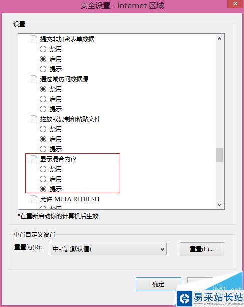 4、自定義的設置有很多,大概在滑動欄劃到四分之三位置的時候,可以看到”顯示混合內容“選項