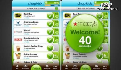 Shopkick改變了很多公司(諸如Best Buy、Target、Macy’s Wet Seal等)給顧客提供獎勵和禮券的方法。Shopkick開發出了一種叫作Shopkick Signal的技術。只要你的手機下載了這個App,它就能讓用戶僅需走進商店就可以獲得叫作Kickbucks的購物積分。