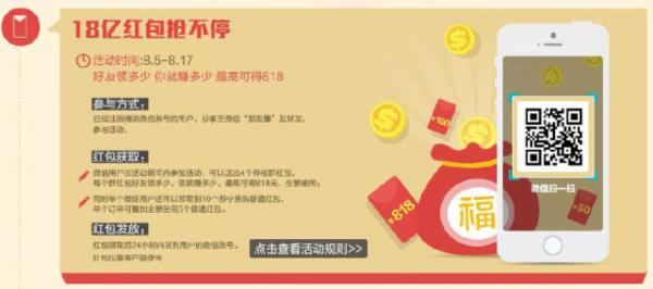 在今年馬年春節(jié)期間,微信紅包開始大熱。現(xiàn)在微信紅包不僅是節(jié)假日必備的互動方式,也是商家促銷的利器。而在蘇寧易購此次818店慶中,也開始利用微信紅包的形式攻占網(wǎng)友的朋友圈和社交關(guān)系鏈,最終促進(jìn)網(wǎng)友在蘇寧易購的銷售。