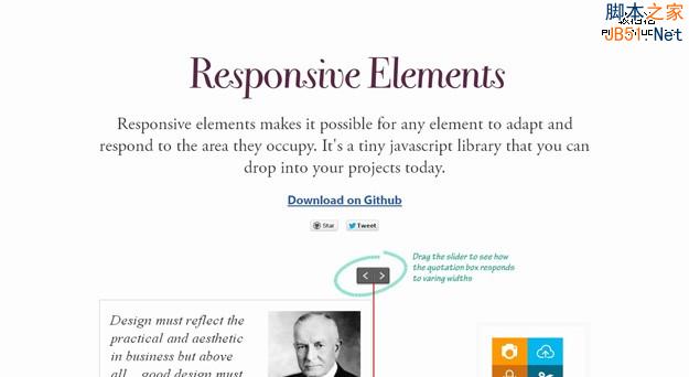 Responsive Elements 能讓任何網(wǎng)頁元素都隨著屏幕尺寸響應(yīng)式變化,它本質(zhì)上是一個JS庫,它能監(jiān)測到屏幕的寬度,并讓網(wǎng)頁元素隨之進(jìn)行調(diào)整適配。