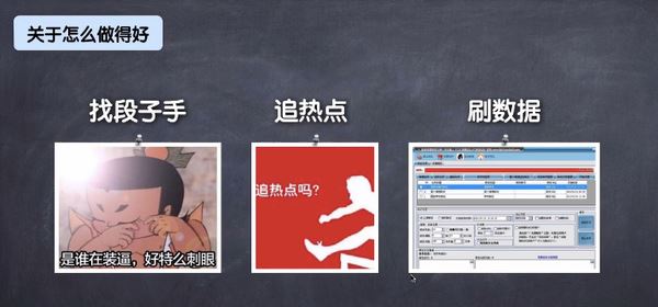 【誤區一:找段子手】 段子手看似現在很紅火,其實最紅火的時間應該是在2015年,2016年段子手這個行業的生意已經沒那么好了,但是現在還有很多人去找段子手,認為段子手的影響力很大,去寫一個漫畫或者是一個有意思的東西,然后投放到市場,讓一些微博大V去轉發,認為這個就是營銷的成功。但是所轉發的數據和你的業務轉化有關系嗎?帶來了真正的轉化了嗎?