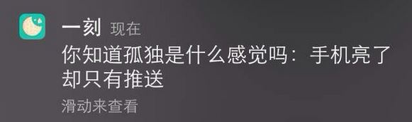 等一個(gè)人回微信,看到屏幕亮了以為是他的回復(fù),結(jié)果卻被一個(gè)APP捕捉到了內(nèi)心的孤獨(dú),在用戶的百無聊賴之際,這個(gè)推送提供了用戶打開APP的觸發(fā)點(diǎn)。