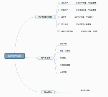 2.針對注冊用戶和活躍用戶的促活留存環節是運營人員的最主要工作之一,我們日常所做的用戶分層分類、用戶成長激勵體系等都是在這個環節做的,體現在數據上我們可以設立的指標體系包括了解用戶規模和質量的體系,了解用戶參與度(使用深度)的體系和了解用戶屬性的用戶畫像體系。