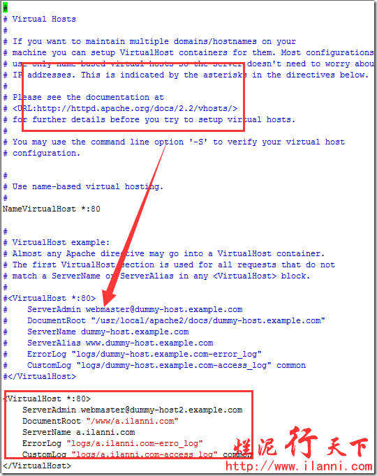 下面我們所有有關(guān)虛擬主機(jī)的配置都在httpd-vhosts.conf文件中進(jìn)行。如下: