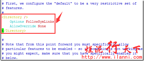 注意在此之前,我們還要修改httpd.conf文件把有關(guān)目錄訪問(wèn)權(quán)限的配置選項(xiàng)去掉。否則在訪問(wèn)虛擬主機(jī)時(shí),會(huì)報(bào)403錯(cuò)誤。如下: