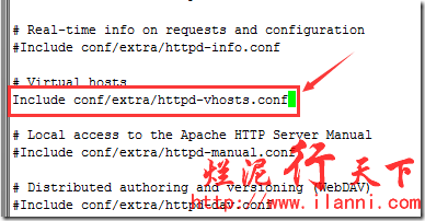 該行的作用是,把conf/extra/目錄下的httpd-vhosts.conf文件導(dǎo)入虛擬主機(jī)配置中。