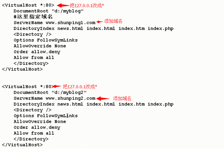 3. 在httpd-vhosts.conf文件中添加配置(注意這里的配置和方案一的不一樣)