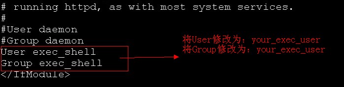 下面我們修改一下Apache的配置文件,使它的執行用戶改為我們剛才新建的這個用戶your_exec_user :