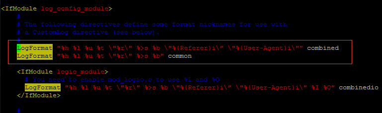 #vim /usr/local/apache2.4/conf/extra/httpd-vhosts.conf //配置日志格式