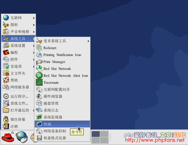 1.點擊 紅帽菜單 > 系統工具 > 終端