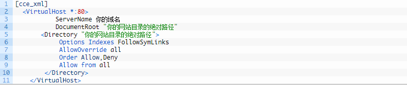 2. httpd-vhosts.conf 默認(rèn)的位置在Apache安裝目錄下面的conf文件夾下的extra文件夾下,在該文件的最下面添加: