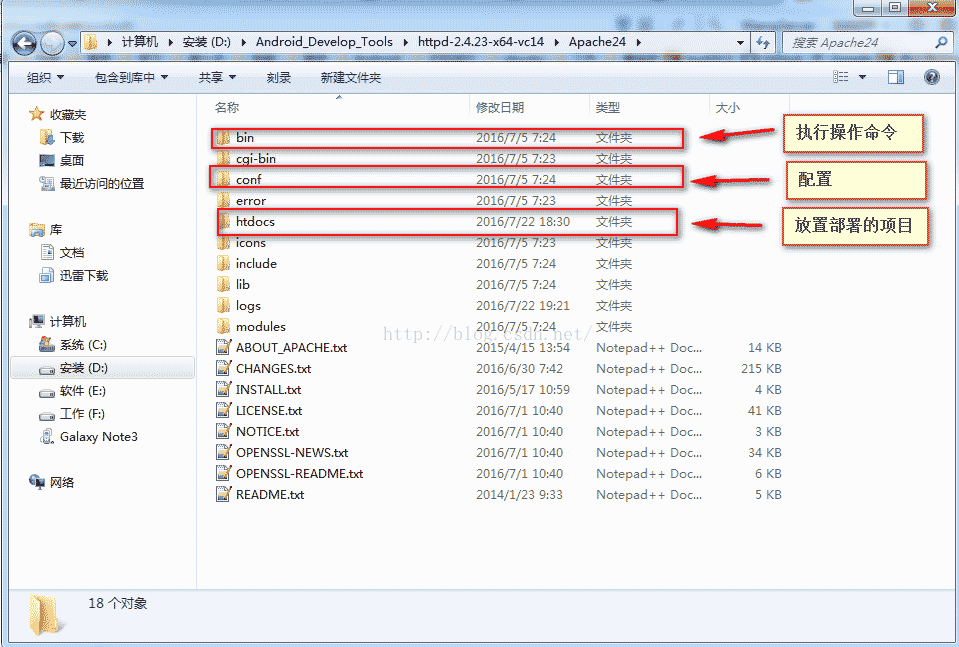 2、按照Apache默認的配置我們應當將Apache24硬盤的根目錄下,但是我們沒有放置在根目錄下所以需要配置,進入conf目錄下打開httpd.conf文件