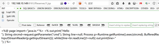 2、瀏覽器訪問(wèn)http://192.168.10.149:8161/fileserver/1.jsp,下圖可以看到fileserver目錄下的webshell沒(méi)有被解析,說(shuō)明fileserver目錄沒(méi)有執(zhí)行權(quán)限