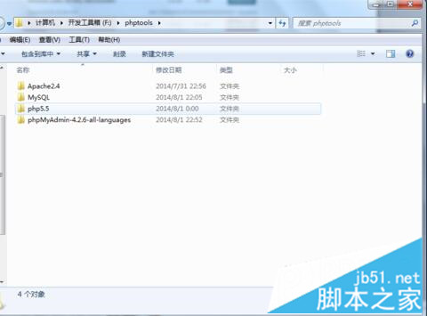 Apache下載后是zip包,解壓到后放在合適的位置就可以了,不建議放在C盤里,因為重裝系統C盤的數據會全部丟失,這里我們將它放在F盤的phptools文件夾下的apache2.4目錄下
