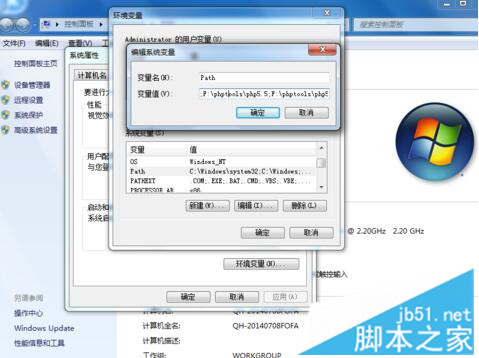 2、將 F:/phptools/php5.5和F:/phptools/php5.5/ext加入環境變量PATH中,選中計算機,右鍵屬性-->高級系 統設置 -->環境變量-->系統變量,找到Path,編輯,在其后加上;F:/phptools/php5.5;F:/phptools /php5.5/ext,如下圖,