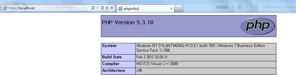 在瀏覽器地址欄輸入http://localhost/,如果頁面顯示PHP版本信息則說明Apache與PHP整合成功